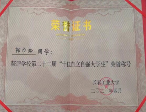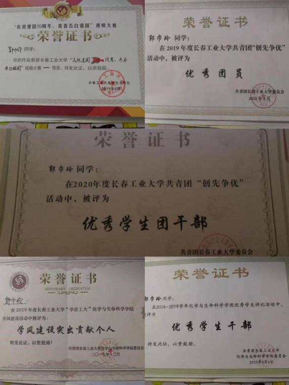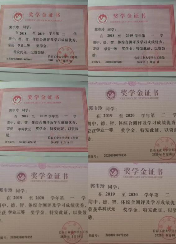 在校期间,曾获得2次国家励志奖学金,9次学业奖学金,3次单科状元;获得2020年度“长春市优秀共青团员”称号、污污漫画