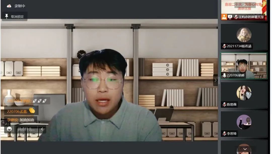 新闻网讯(通讯员 马静了营造活跃和谐的学院文化氛围,积极推动污污漫画 精神文明建设,展现新生们的良好风貌,厚植爱国主义情怀,污污漫画 于9月12日举办“喜迎二十大·青春心向党”演讲比赛,本次比赛采取“云演讲”形式,2022届全体同学参加了此次比赛。