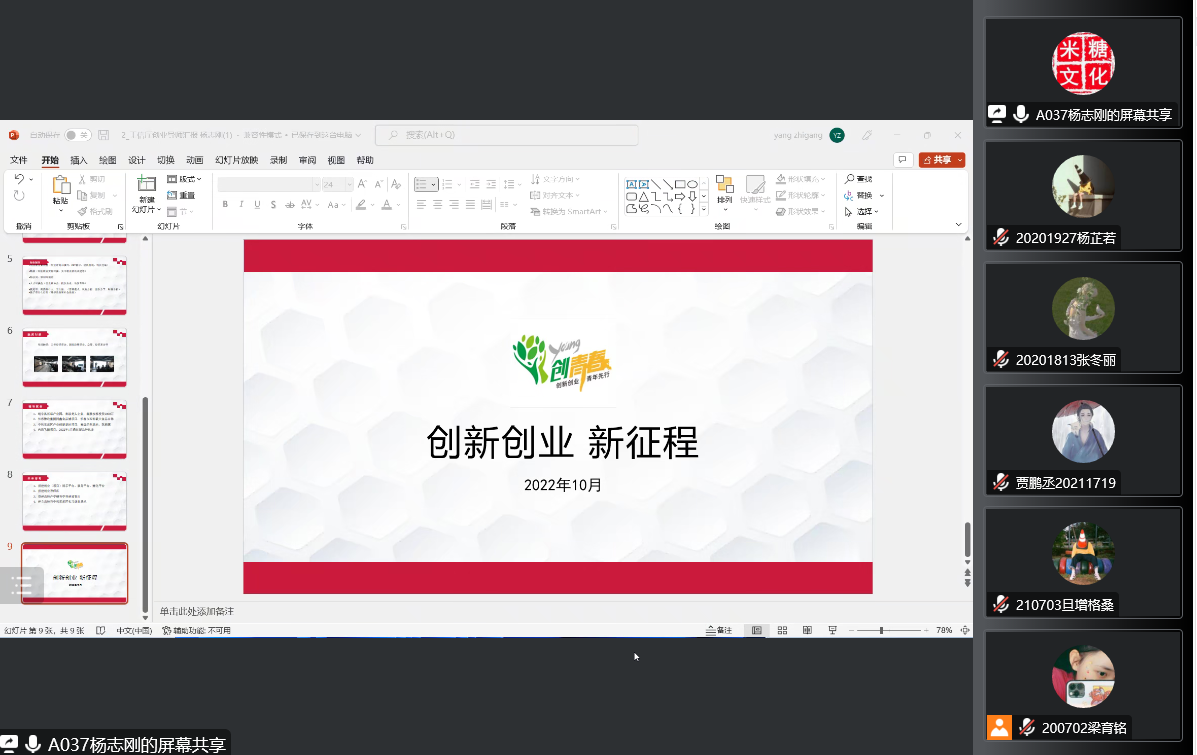 本次会议中杨志刚老师主要强调四个方面内容一是创业辅导杨志刚老师对高校进行创新创业教育的背景目的和意义进行了解读从创业就业集训营路演科技周双创周活动和人才对接会详细介绍了创新创业的方法途径二是融资对接杨志刚老师详细介绍了天使投资资金国家政策资金等项目融资为学生在创新创业过程中的资金问题提供了帮助三是辅导案例杨志刚老师介绍了靖宇蓝莓产业园等项目给学生创业带来了启迪四是未来思考杨志刚老师从搭建创业搭建创业导师库搭建高校产学研和学科建设智库等方面引发同学们对未来的思考并且建议同学们脚踏实地、勇于探索、大胆创新。为自己未来的就业做好充分的准备以便实现个人更快更好的发展