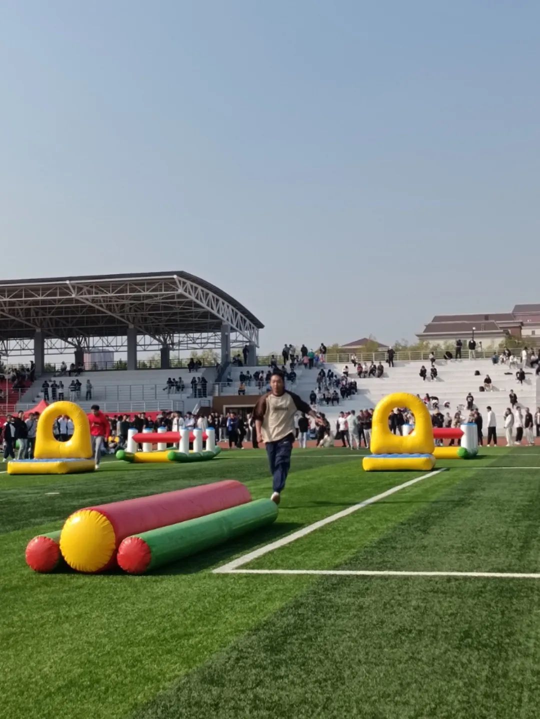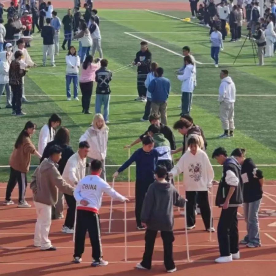 8人参加,在足球场上徒手握住4米长杆分别按照逆时针、顺时针、逆时针、顺时针、逆时针,然后返回起点(即终点),团队整体返回起跑线后计时结束。