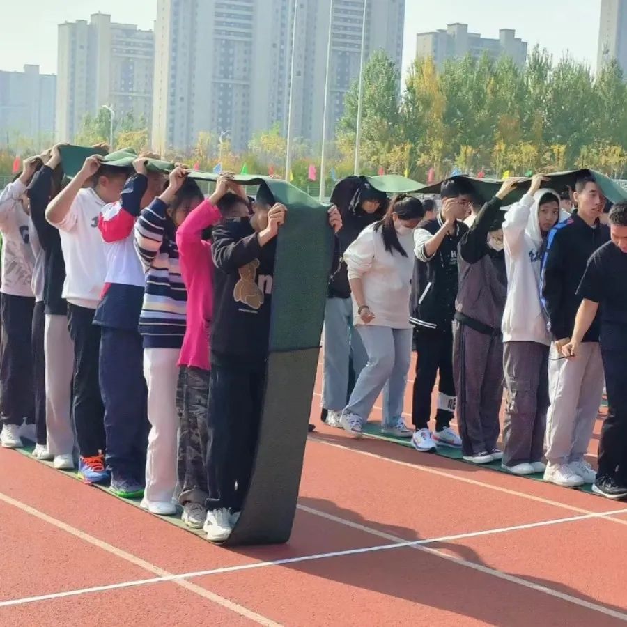 在10米的距离内,8人每人手持一截U形管,将高尔夫球在U形管上连续传递到终点线的骰子盒里,整个过程不许用手扶球,不能使球停止或向后,球落地后从出发点开始重新传递。用8根80厘米的竖杆首尾相连组成一个圆后按顺序从一头扶起,右手徒手按在杆头,左手背在身后,保持距离,大家同时向前去按前一个人的杆头,连续完成8次回到原位,扶杆或杆倒重新开始此项目。所有人围成一个圆,击掌8次,每击一次掌说出固定字,第一次说一个字,第二次说前两个字,以此循环增加。击掌时先用双掌拍左边队友肩背部一次,然后拍右边队友一次,随后体前击掌一次,如此循环增加直到完成后全体同学跳起完成。