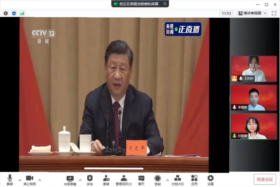 全体师生通过网络会议的形式组织学习观看《庆祝中国共产主义青年团成立100周年大会》线上直播,并展开了热烈的讨论。