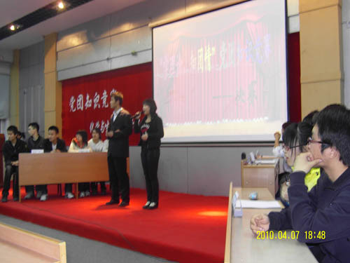 团委在南湖校区综合报告厅举办“党团知识竞赛”决赛。团委副书记官慎惠、学生会主席王敏、社团联合会主席赵曦等主要学生干部作为嘉宾及评委出席本次比赛。
