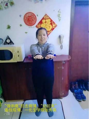 在家中的她们上得厅堂,下得厨房,她们不仅在教书育人的工作上兢兢业业,更是以自己的行动作为表率,用青春活力的姿态向化生学子传递了积极向上的思想。着既是纪念第110个妇女节,亦是传递宅家运动的积极防疫心态,在此次战“疫”的关键时期,化学学院的女神们用自己的力量,自己的方式,为武汉加油!为中国加油!