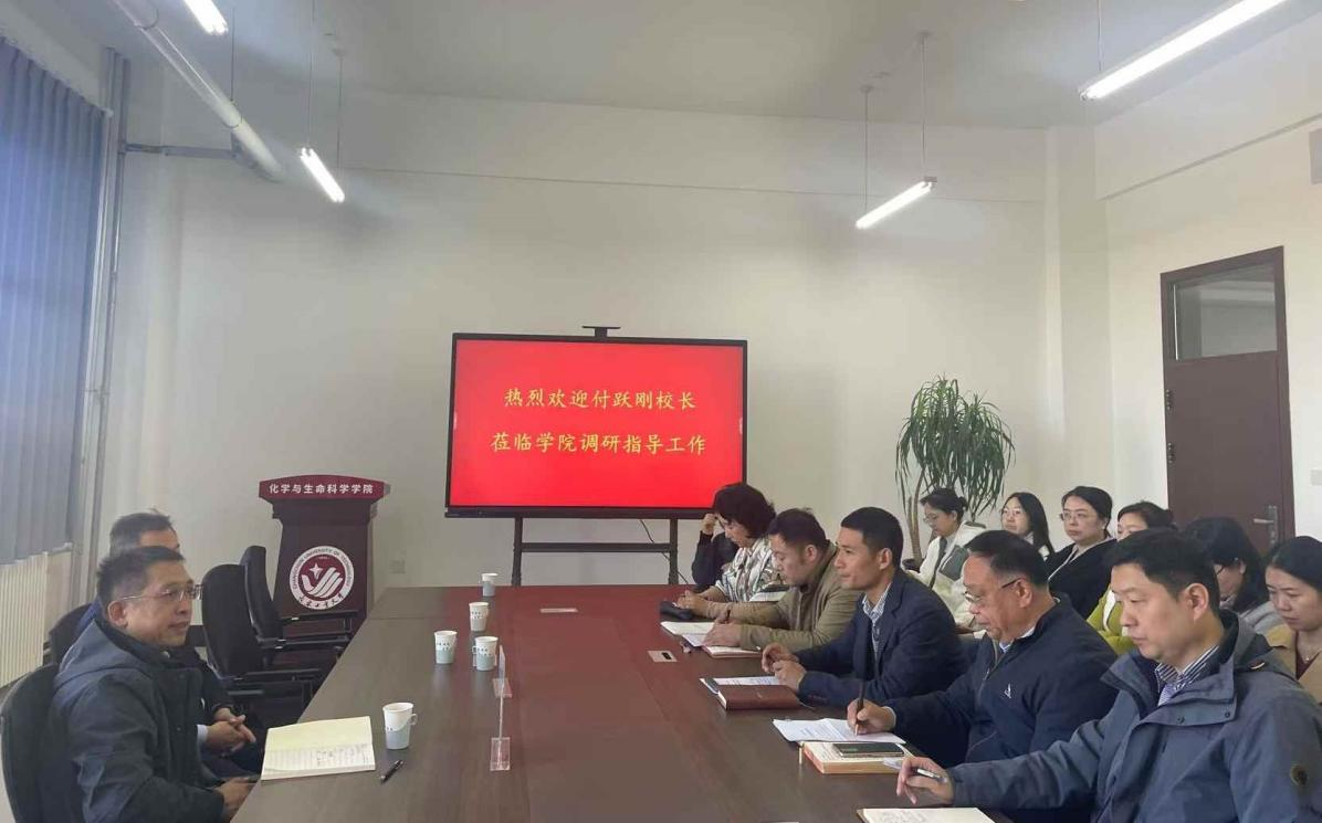 调研中,付跃刚校长在学院班子成员陪同下,实地走访了学院科研工作室和教学实验室,与张海悦、张凤清、殷玉和等一线教学科研人员亲切交谈,深入了解实验室运行及科研工作开展情况,并就碳纤维及其助剂、人参特产开发、生物医药等领域的成果转化、市场应用前景等与教师进行了交流。