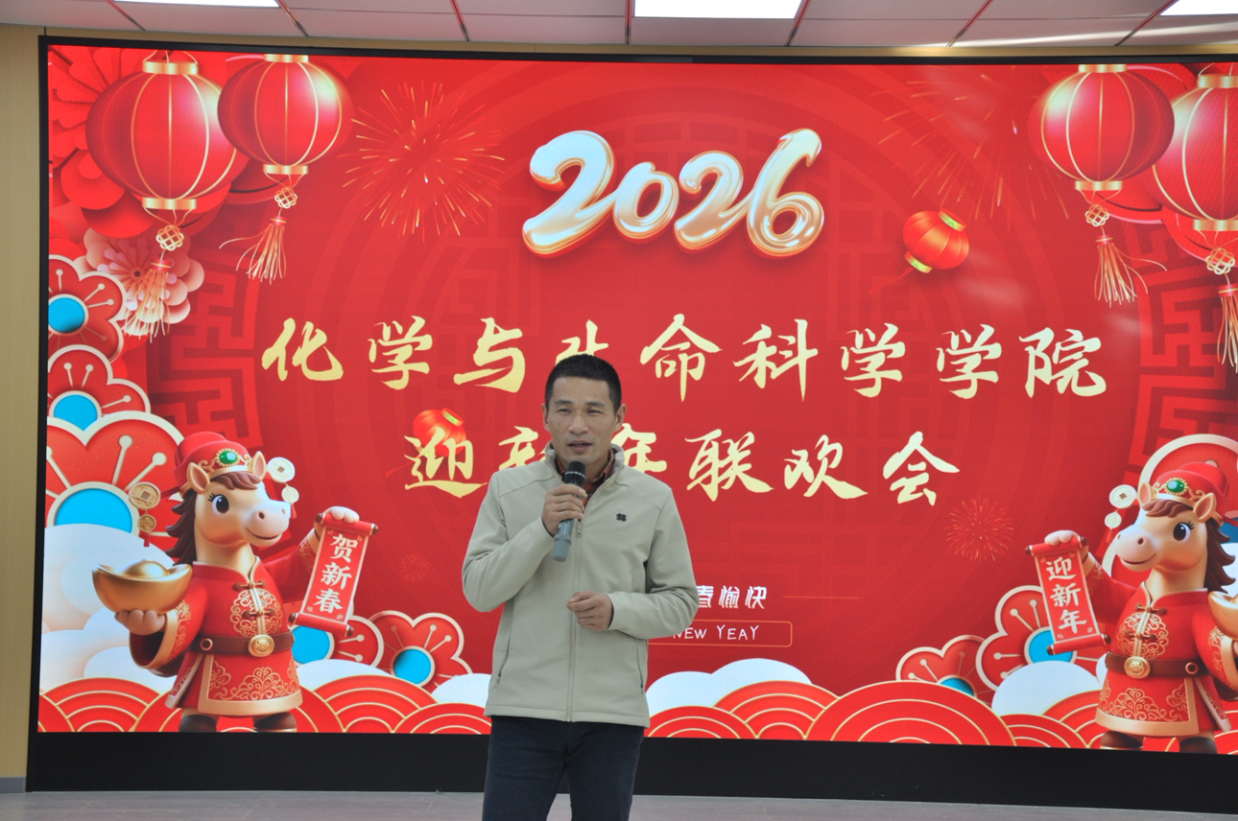 温情寄岁,诗颂新年。化学系教师代表登台带来诗朗诵,用铿锵有力的语调诉说对新年的期盼,用真挚动人的情感传递对学院、对师生的美好祝愿,字里行间满是温暖与力量,既展现了教师们的儒雅风采,也让在场师生感受到浓浓的新年温情。