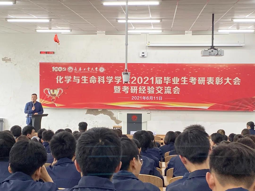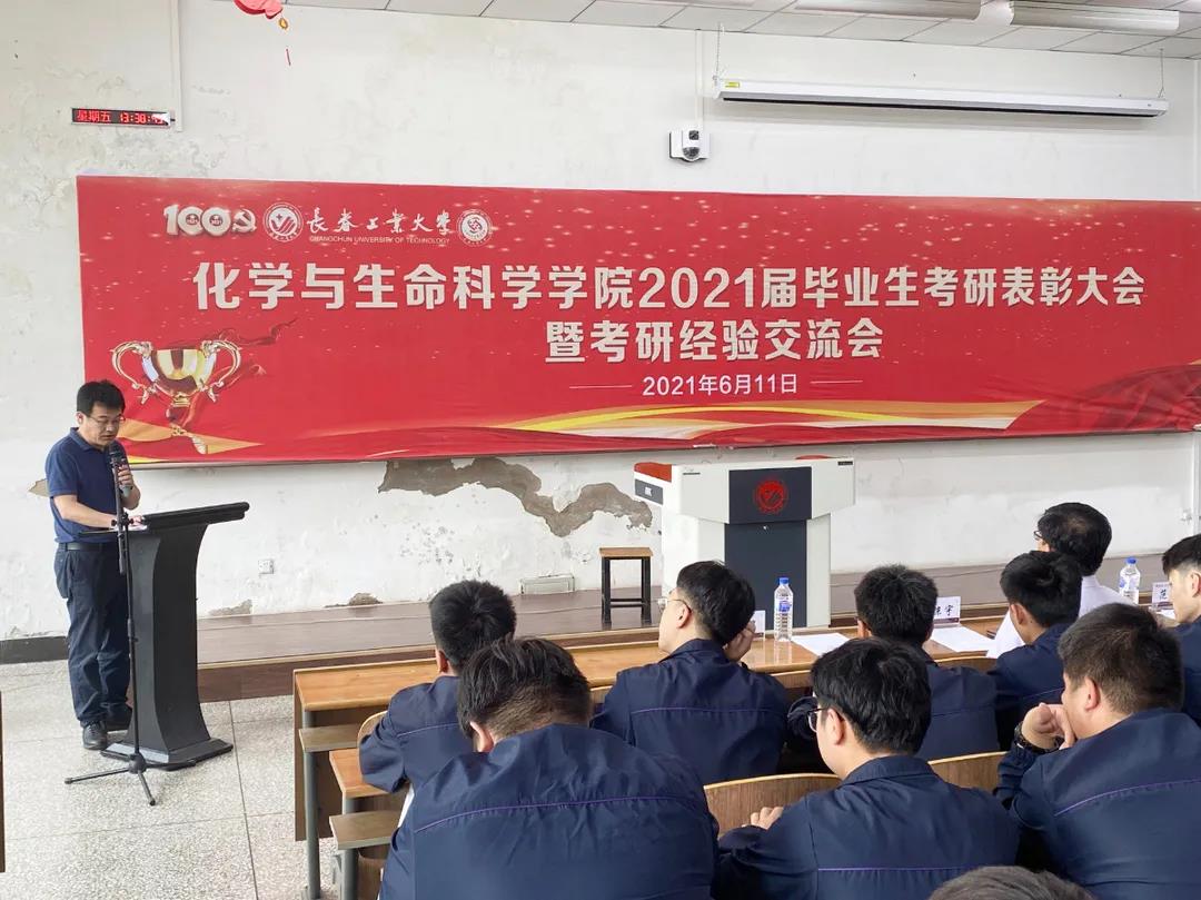 新闻网讯(通讯员:王楷)为加强选树表彰先进榜样,激发学生考研热情,持续营造优良学风,6月11日,学院于北湖校区西区西阶101教室召开2021届毕业生考研表彰大会暨考研经验交流会。校研究生工作部部长范琳琳、就业指导中心主任兼学生工作部副部长常惊宇,学院院长王哲、党委副书记徐秉锋、研究生党支部书记张烨,2021届考取硕士研究生代表,2019级、2020级意向考研生共同参加了会议。会议由学院团委书记张鹏主持。