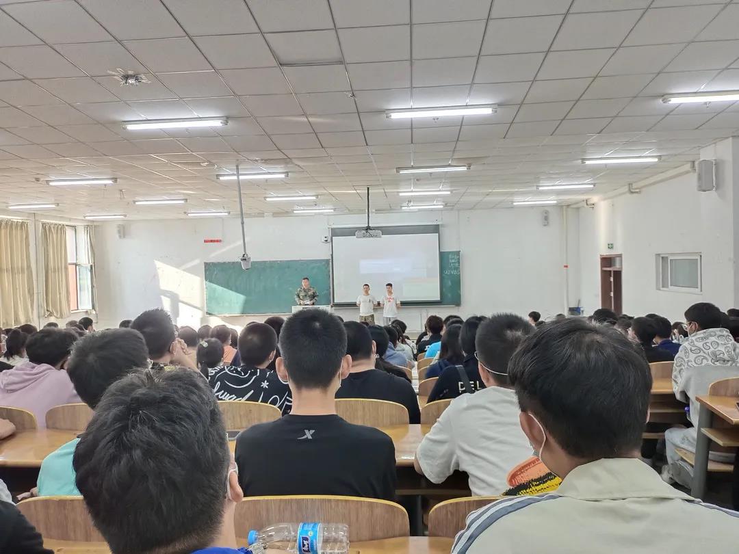 于9月6日开始了为期21天的新生军训。由于近期疫情原因,2021级新生军训计划进行了初步调整,改由学校退役大学生承训,并于9月10日在北湖西区西阶102召开了新生教官见面大会。新生教官付骐羽、常成海出席了此次会议,2021级新生辅导员张鹏主持大会并进行讲话,2021级全体同学参加了此次会议。