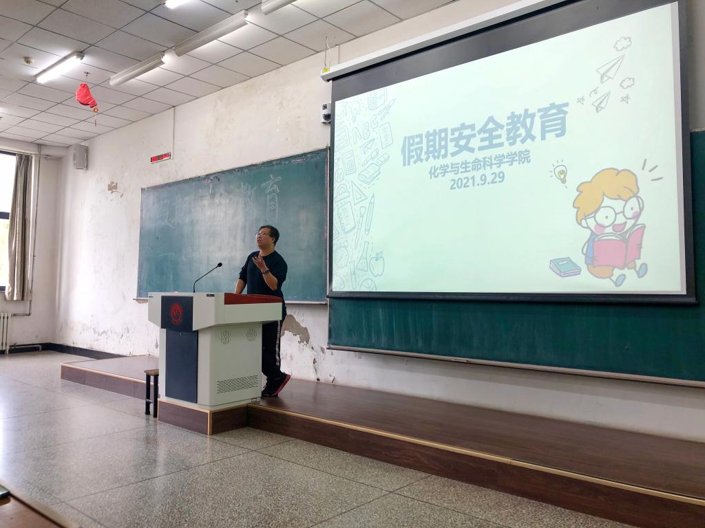 于9月29日中午在北湖校区西区西阶101教室召开十一假期安全教育大会,会议由2020级辅导员张烨主持,2020级全体学生参加了此次会议。