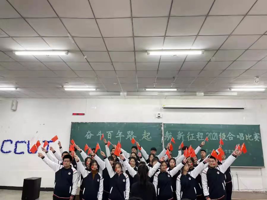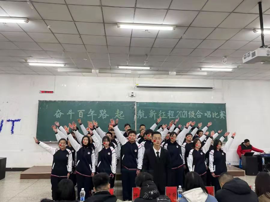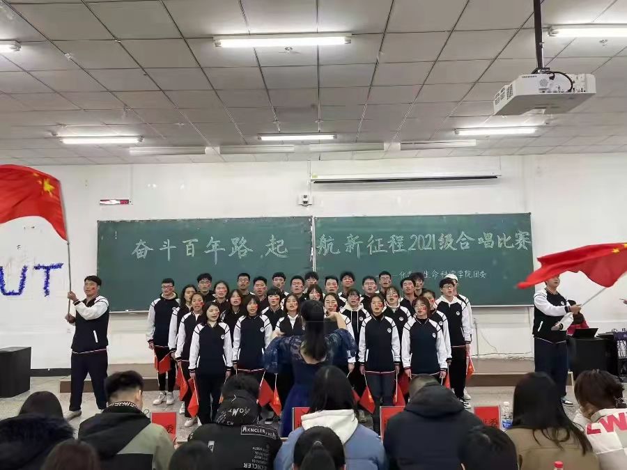 于北湖校区西阶102开展以“奋斗百年路,启航新征程”为主题的合唱比赛,所有2021级同学参与比赛。