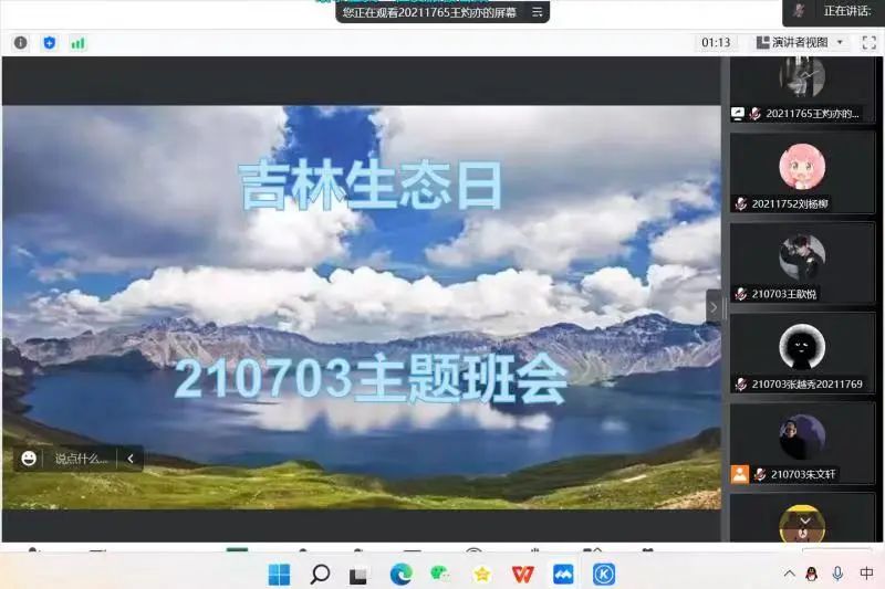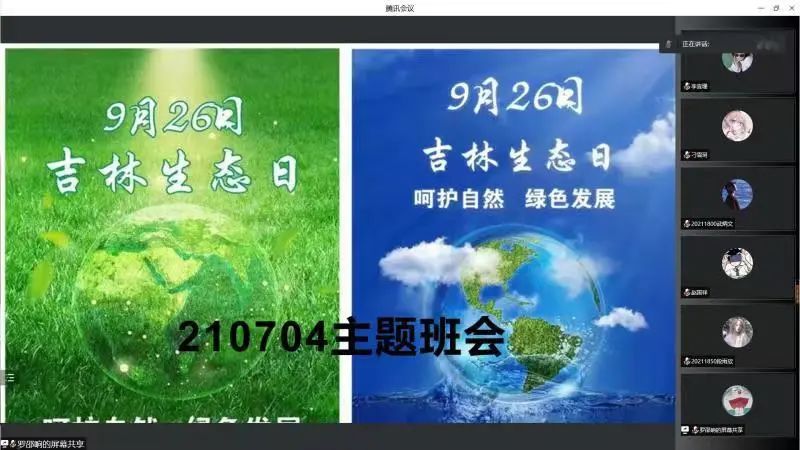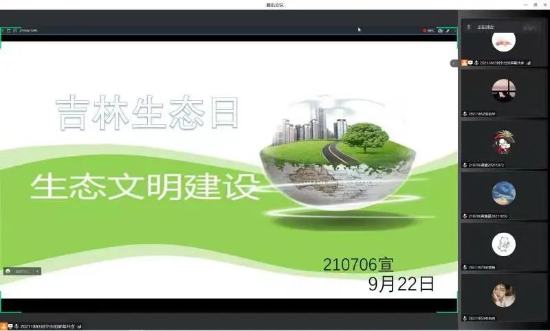 2021级各班组织召开“吉林生态日”线上主题会议,全体21级同学参与本次会议。