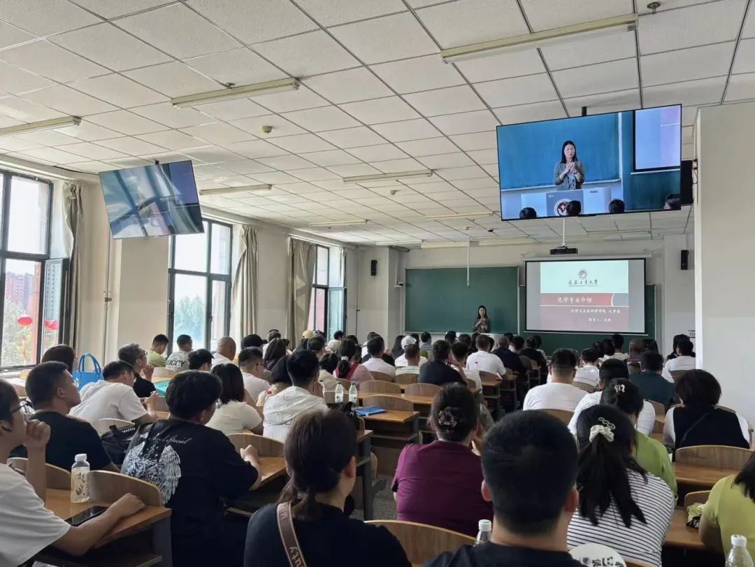 于8月31日下午,在西区主楼召开了系主任见面会。材料化学系何雯雯老师、食品科学与工程系王红蕾老师、生物工程系孙尧老师、化学系关爽老师分别在相应的教室开展了专业领航新生见面会。