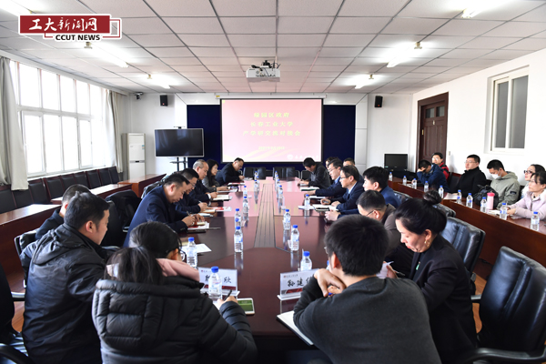 就政企产学研合作事宜进行座谈交流。学校党委常委、副校长张明耀、科研处及相关学院科研院长、科研人员参加会议。