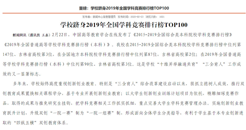 学校在“挑战杯”吉林省大学生创业计划竞赛获佳绩