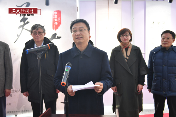新闻网讯(通讯员 姜丹)为深入贯彻落实习近平总书记关于美育工作的重要指示精神,弘扬中华民族优秀传统文化,加强爱国主义教育和革命文化教育,纪念一二·九运动85周年,12月9日,学校在北湖校区西区应用技术学院举办“美蕴工大”—纪念一二·九运动师生书法作品展。副校长李占国,党委副书记李新,党委常委、宣传部部长、教师工作部部长王鸣晖,以及教务处、学生处、美育教研中心、应用技术学院等有关部门负责人、参展师生代表出席开幕式。