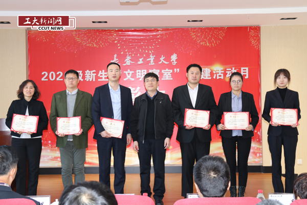 周文军宣读了《关于表彰2020级新生“文明寝室”创建活动先进集体和优秀个人的决定》。化学工程学院等5个单位被评为“文明寝室优秀组织单位”,王颖群等6名同志被评为“优秀指导教师”,北湖西区雅逸苑527等252个寝室被评为“文明寝室”,杨开等252名学生被评为“优秀寝室长”,张博等80名学生被评为“优秀学生个人”。与会领导为受表彰师生代表颁奖。