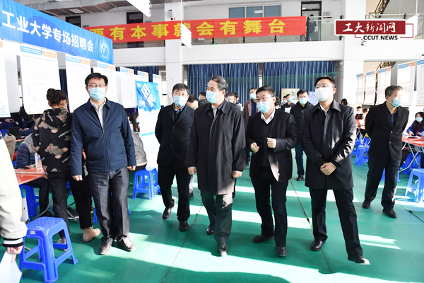 学校领导陪同省教育厅副厅长许世彬视察招聘会现场