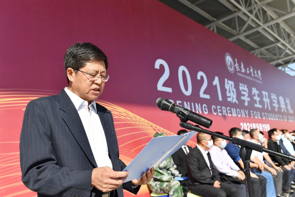 校长张明耀代表学校向来自祖国各地的6649名2021新同学致以最热烈的欢迎和最诚挚的祝贺!为全体新同学上了“开学第一课”。介绍了学校的发展历程和近年来取得的主要成绩。希望同学们能秉承工大人自强不息、志在一流的精神,为新时代吉林全面振兴全方位振兴添砖加瓦,贡献青春力量。