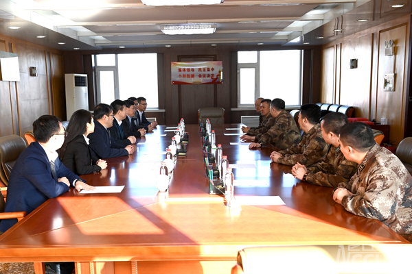 随后,学校慰问团来到长春警备区,受到政治委员曹力、副司令员李岩等部队首长的热情接待。党委书记孙长智代表学校党委送上全校师生对部队官兵的节日祝福和美好祝愿,向长春警备区一直以来对学校武装工作的大力支持和对贫困学生捐资助学表示诚挚的感谢。校长张明耀介绍了学校科研成绩和新校区建设情况。警备区首长对学校领导一行慰问表示热烈欢迎,曹力政委介绍了警备区在党史教育学习、征兵工作、双拥共建工作上取得的喜人成绩,并感谢学校多年来,对警备区各项工作一如既往的支持,表示今后将继续加强共建合作,为双拥共建注入新的活力。